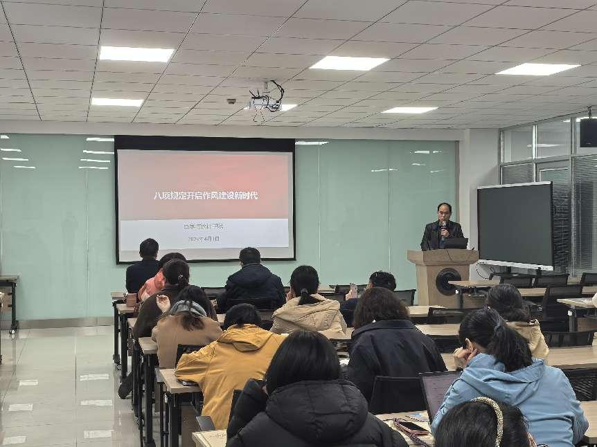 在专题学习环节,罗旻杰从“四个维度理解全面从严治党以八项规定破题的方法论、中央八项规定内容、违反中央八项规定精神的突出问题”等方面带领大家深刻理解中央八项规定精神内涵,要求大家从“提高政治站位、密切联系群众、解决实际问题、恪守为政之德”等四个方面锲而不舍落实中央八项规定精神。